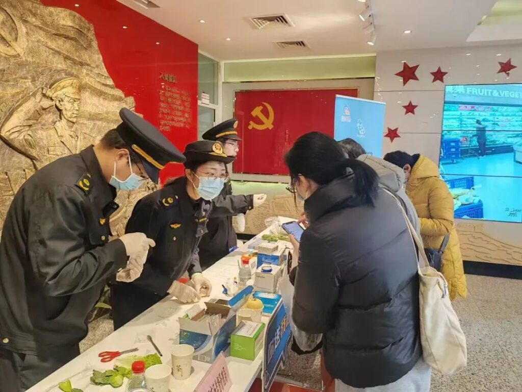 当天,区市场监管局还开展了食品安全知识科普。通过向居民们发放食品安全宣传手册、举办小型科普讲座等形式,普及食品选购技巧、储存方法以及辨别常见食品问题的方法等食品安全常识,让居民们在日常生活中也能够更加科学、安全地选择食品。市民王先生带着女儿来参加活动,他说:“今天特意带女儿过来给家里的青菜做个快检,市场监管部门不仅可以给我们答疑解惑,也普及了很多食品安全的知识,让孩子从小增强食品安全防范意识很有必要。”