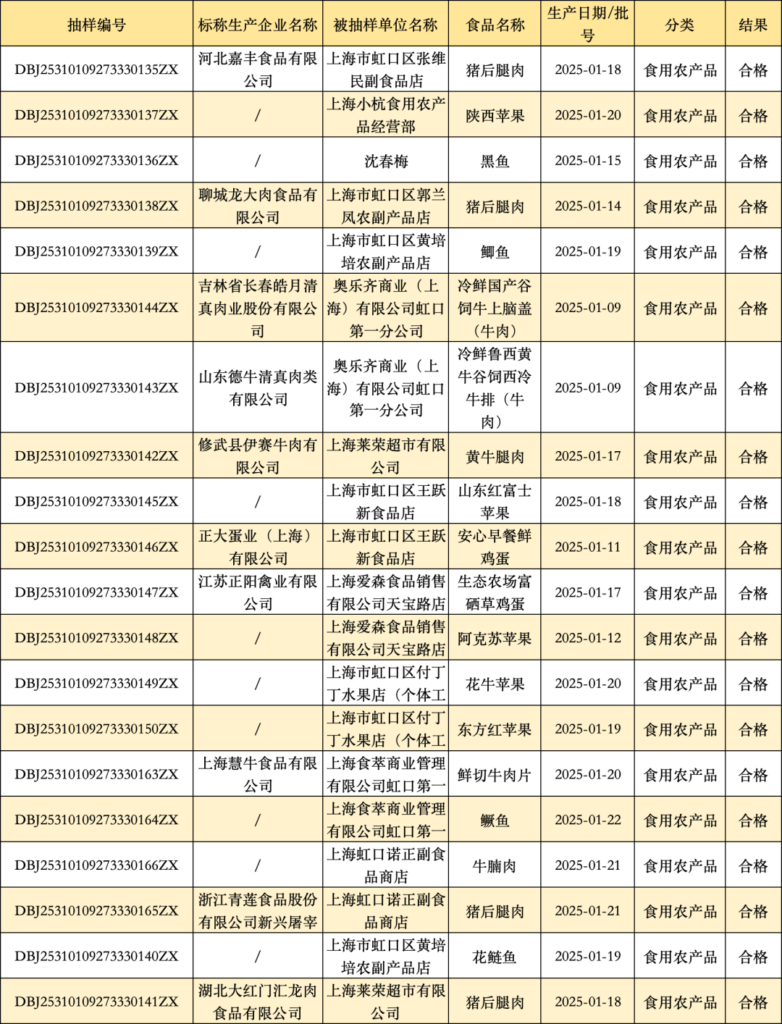 025年松江区食品安全“你点我检 服务惠民生”第1期——年货食品抽检合格汇总表