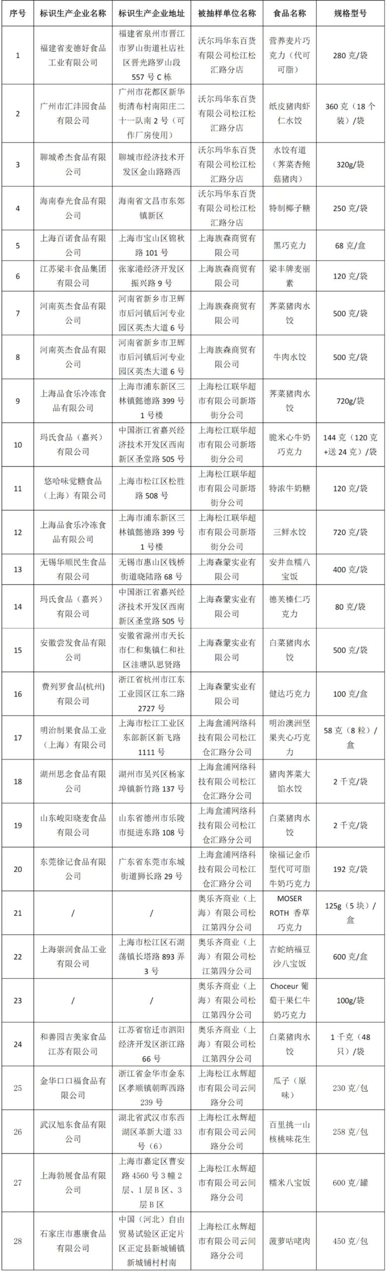 本次共抽检速冻水饺、速冻八宝饭、糖果、巧克力、炒货坚果等年货食品共28批次,涉及本区7家食品经营企业(包括超市、卖场等),国内23家生产企业的26件产品及2件进口产品,主要检测项目涵盖了产品质量指标、重金属、食品添加剂、微生物指标等共计23项。