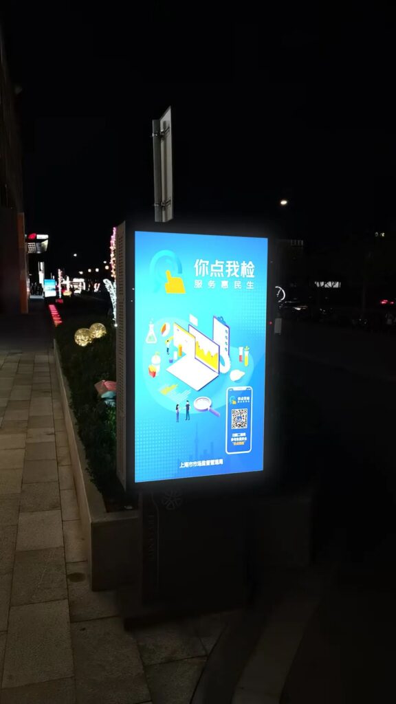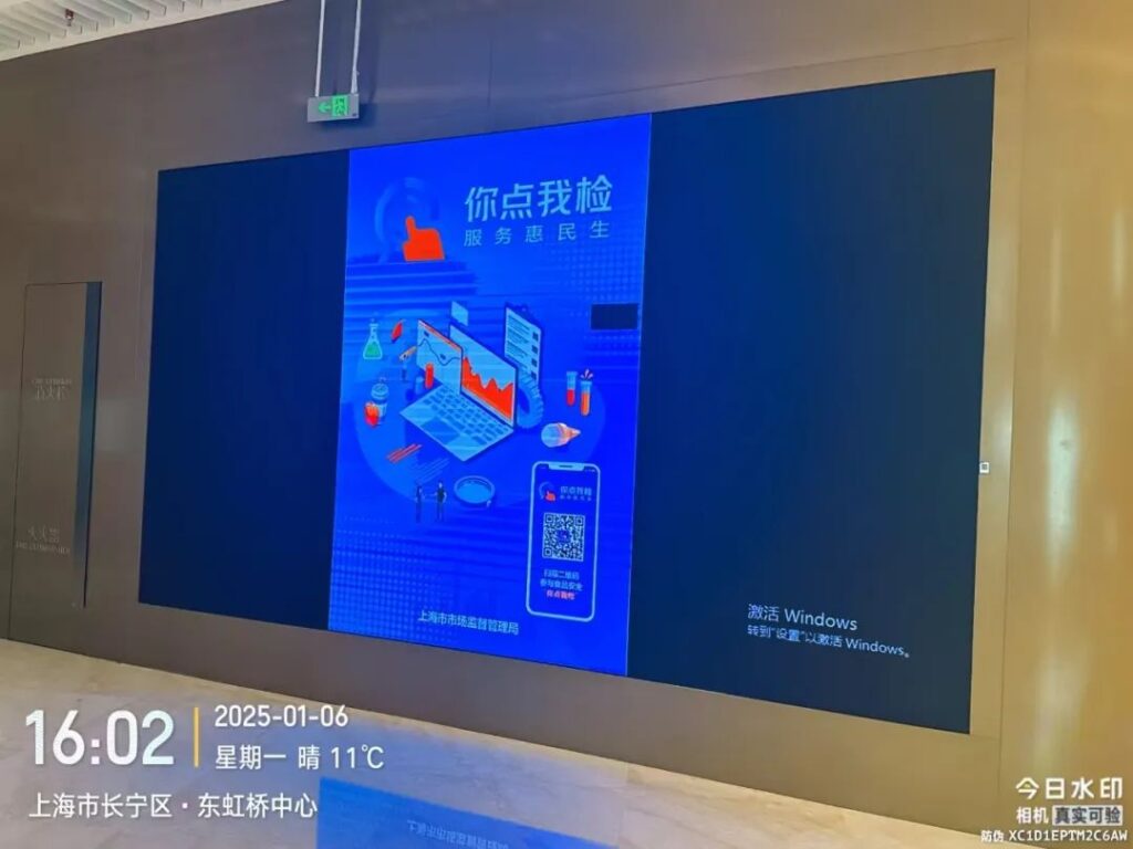 临空所、新华所等在长宁国际、上生新所、大融城等商圈的电子屏,滚动播放“你点我检”电子海报。