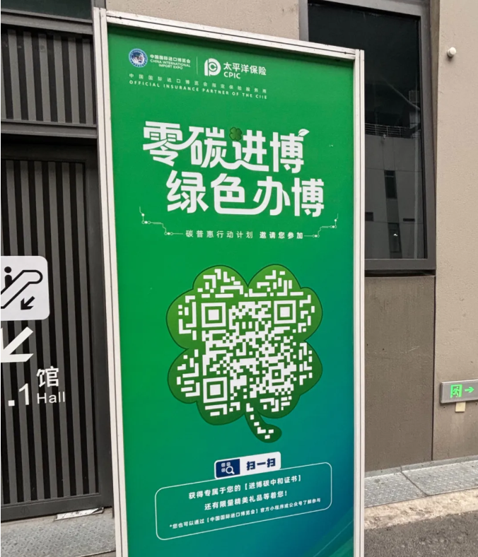 11月5日至10日,第八届进博会在上海隆重举行。漫步在形如“四叶草”的国家会展中心,“零碳进博 绿色办博”的标牌随处可见。