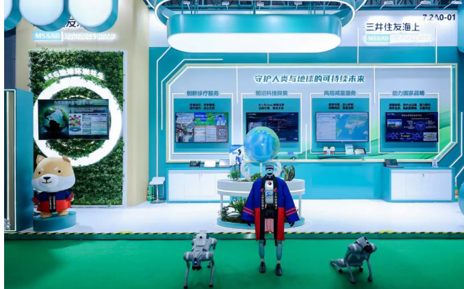 从第二届进博会起,三井住友海上已连续七届参展,是参展年份最长的外资保险机构。七年间,其展台规模持续扩大,展示内容也从传统的保险产品,逐步拓展至风险减量、创新诊疗、气候变化适应性对策等前沿领域。