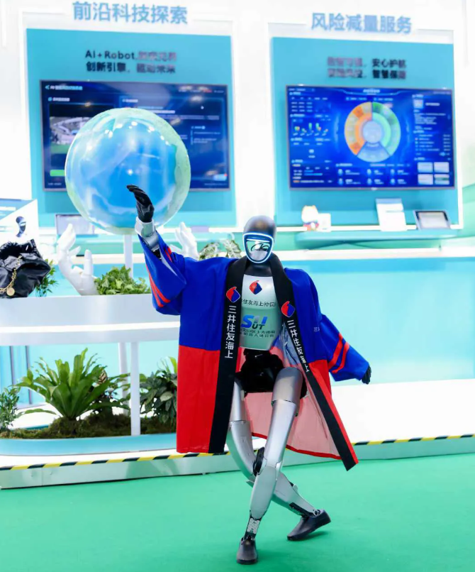 在本届进博会的展台上,三井住友海上带来的一台机器人和两只机器狗吸引了众多目光。据西川真吾介绍,这些设备可以替代传统人力,深入复杂的生产环境进行巡检,通过智能风险识别系统探测潜在风险,并及时向客户发出预警与改善建议,从而实现更可持续的防灾防损。