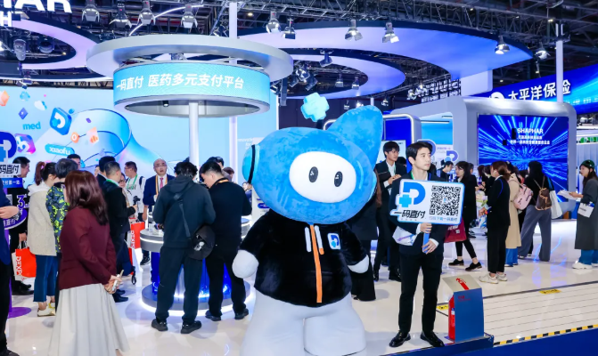 在镁信健康展区内,“一码直付—医药支付第一站”前人头攒动,成为现场观众打卡的焦点。参观者可在此体验先就医、后付费、免材料的商保直付流程,感受创新药多元支付专区带来的便捷购药和支付服务。